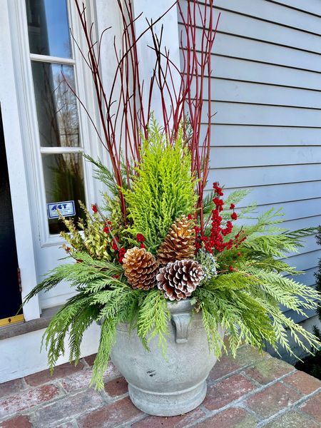 Design, hand selection of materials and installation is done with seasonal colors, textures and planter locations in mind.